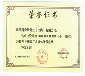 上海市會展行業防疫抗疫貢獻突出企業榮譽證書